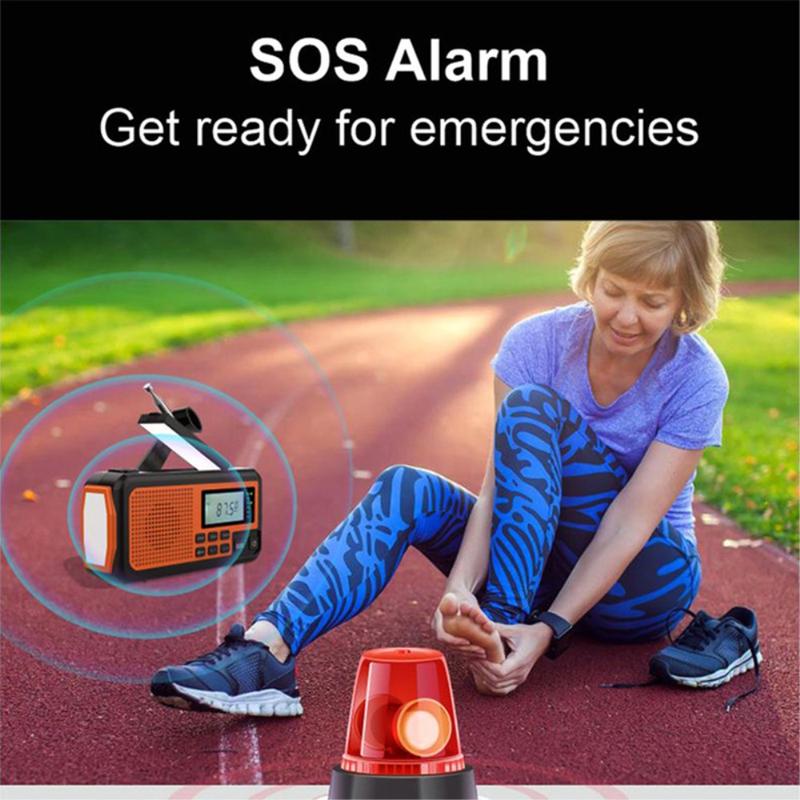 • Solarbetriebenes Notfallradio für draußen mit Handkurbel, Powerbank, LED-Taschenlampe, SOS-Alarm SY373 - 4000mAh