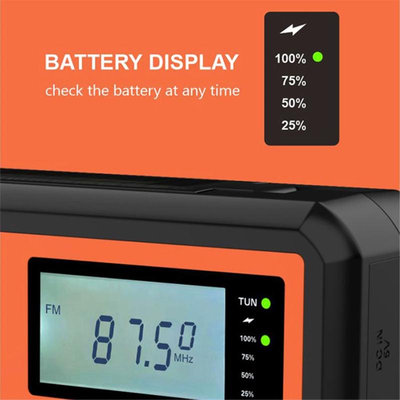 - Funktion: LCD-Digitalanzeige, Solarbetrieb, Lautsprecher, SOS, hochempfindliche Antenne, Kopfhöreranschluss, Handkurbel