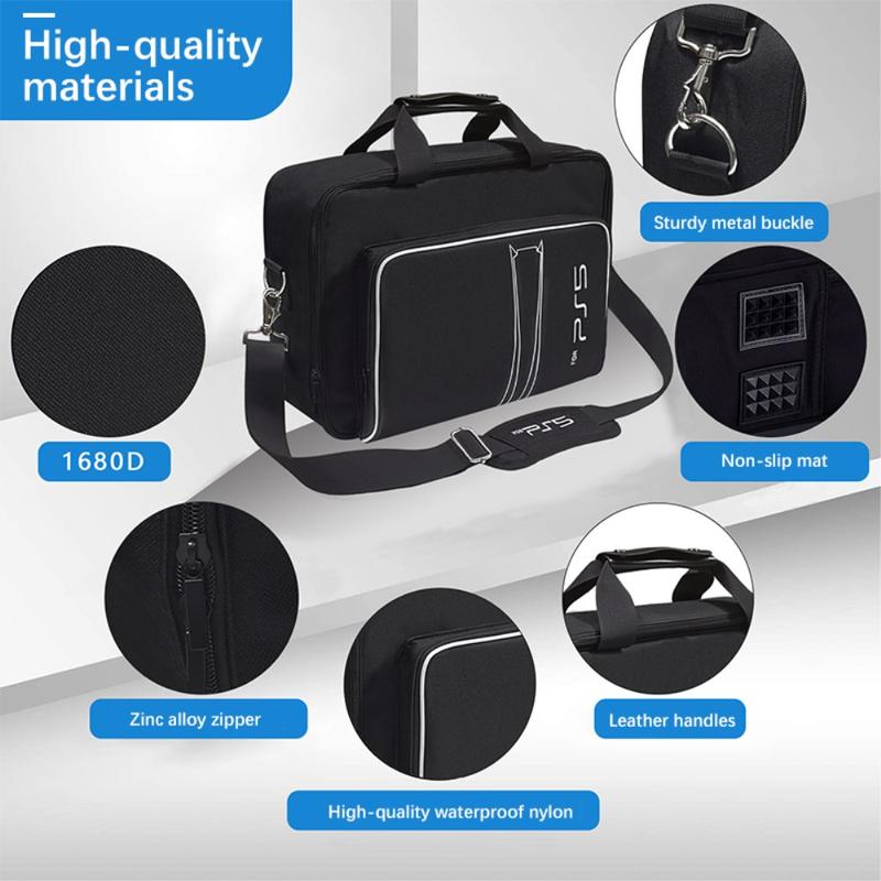 Diese Tragetasche verbindet Funktionalität mit Stil und bietet eine zuverlässige Lösung für den Transport Ihrer PS5-Konsole und Ihres Zubehörs. Die robuste Konstruktion und das durchdachte Design sorgen dafür, dass deine Gaming-Ausrüstung auf Reisen sicher und organisiert bleibt.