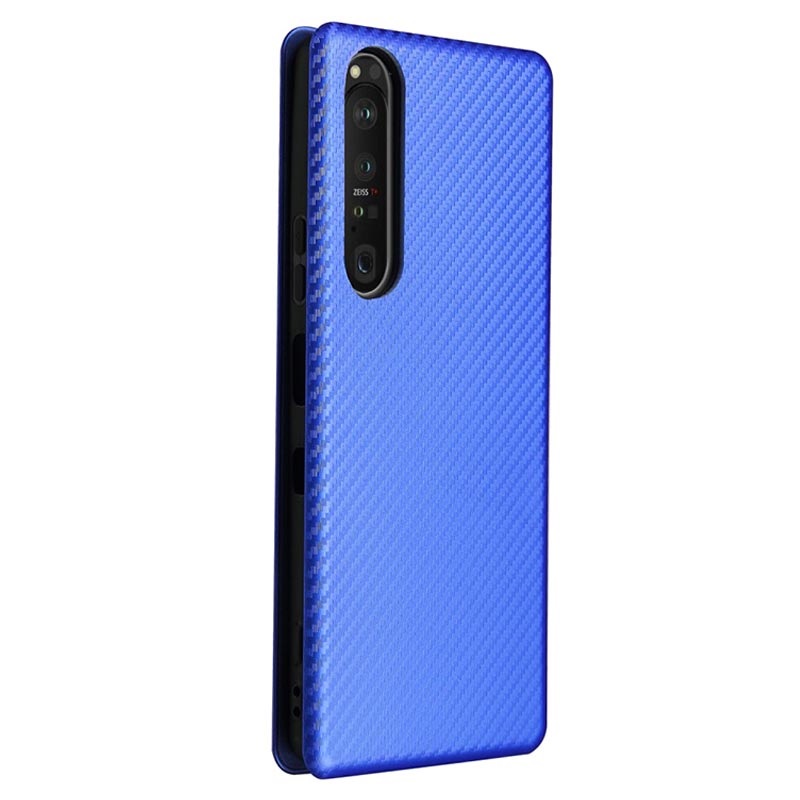 Sony Xperia 1 III Flip Hülle - Karbonfaser - Blau