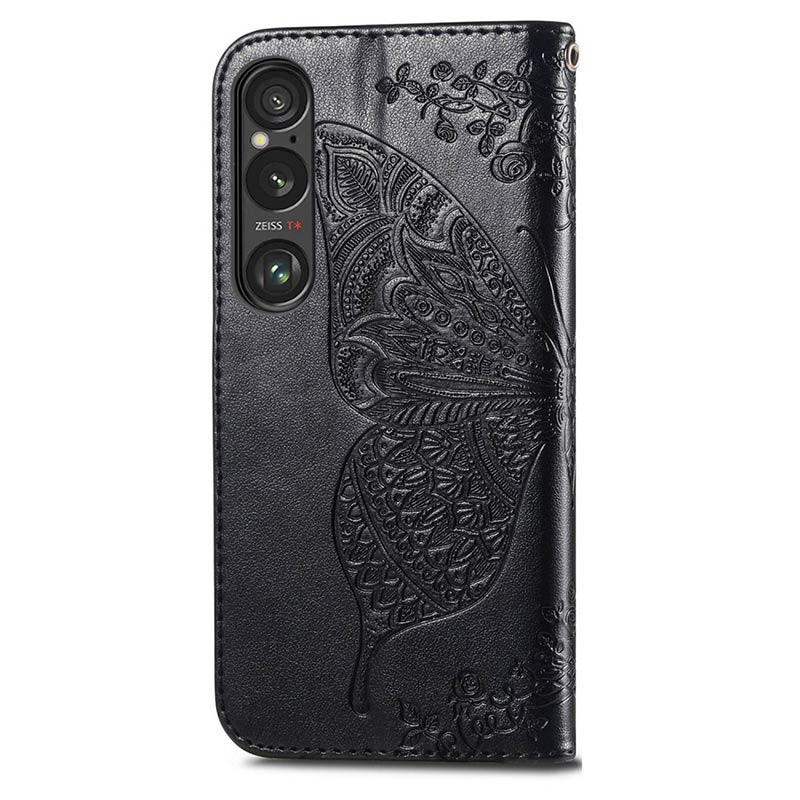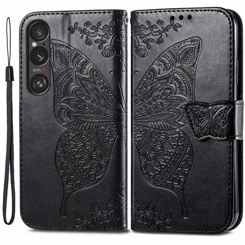 Sony Xperia 1 VI Butterfly Serie Wallet Schutzhülle - Schwarz