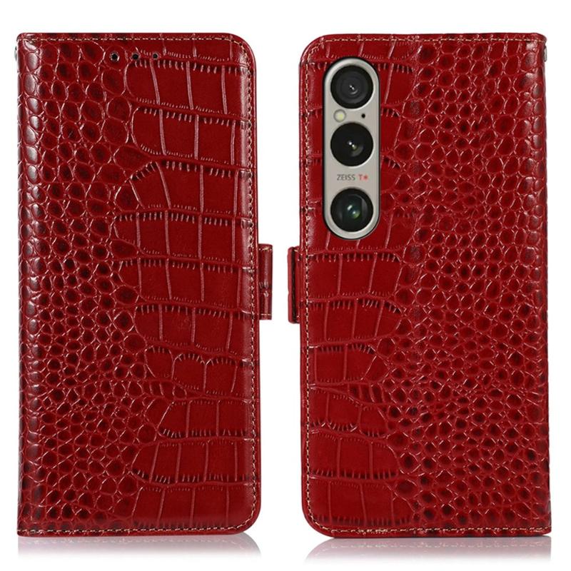 - Crocodile Serie Lederhülle mit Geldbörse für Sony Xperia 1 VI