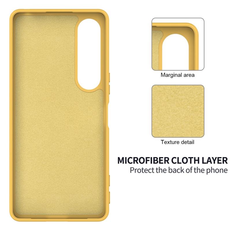 Schützen Sie Ihr Sony Xperia 1 VII stilvoll mit dieser eleganten und robusten Handyhülle aus Flüssigsilikon. Diese Hülle bietet Rundumschutz vor Kratzern, Stößen und täglichem Verschleiß und verfügt über eine praktische Handschlaufe für müheloses Tragen. Die Soft-Touch-Oberfläche bietet einen angenehmen Griff, während das schlanke Profil die elegante Ästhetik Ihres Sony Xperia 1 VII beibehält.