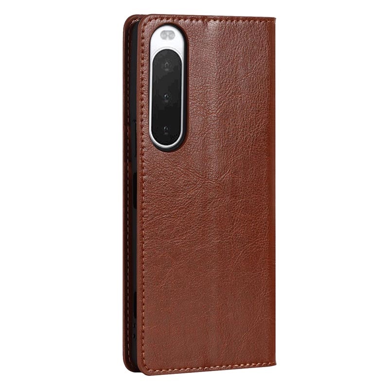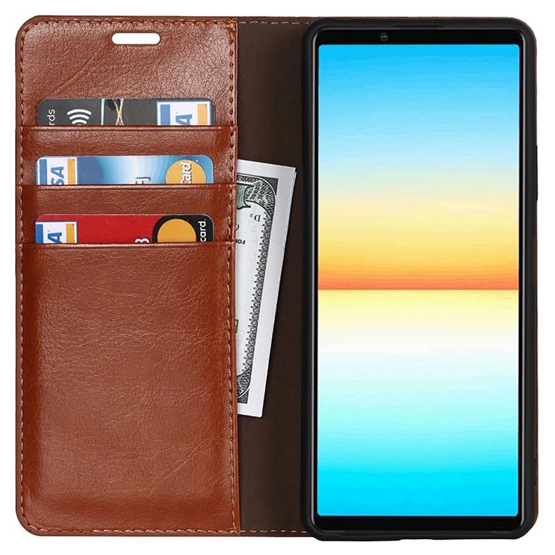 Sony Xperia 10 IV Lederhülle mit Geldbörse und Ständer - Braun