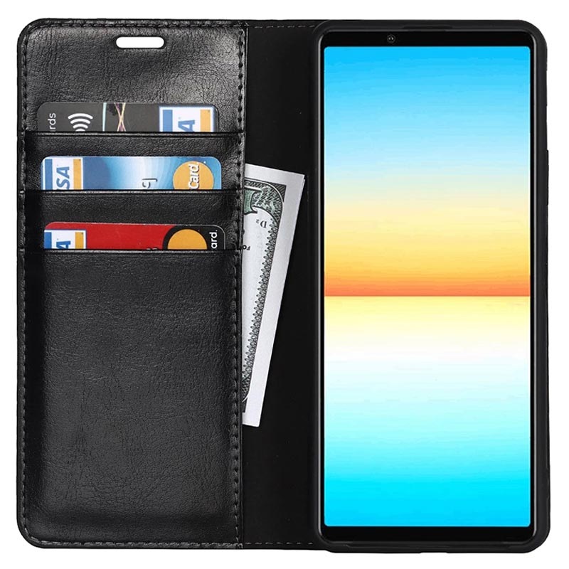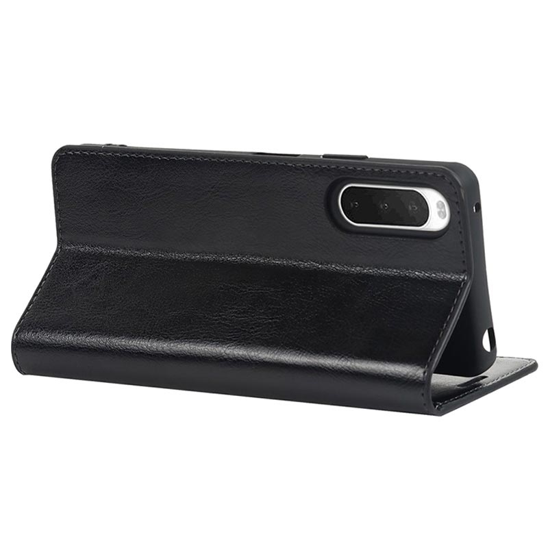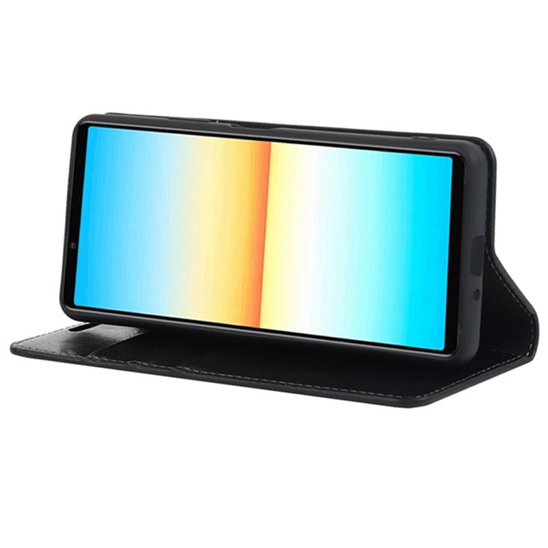Sony Xperia 10 IV Lederhülle mit Geldbörse und Ständer - Schwarz