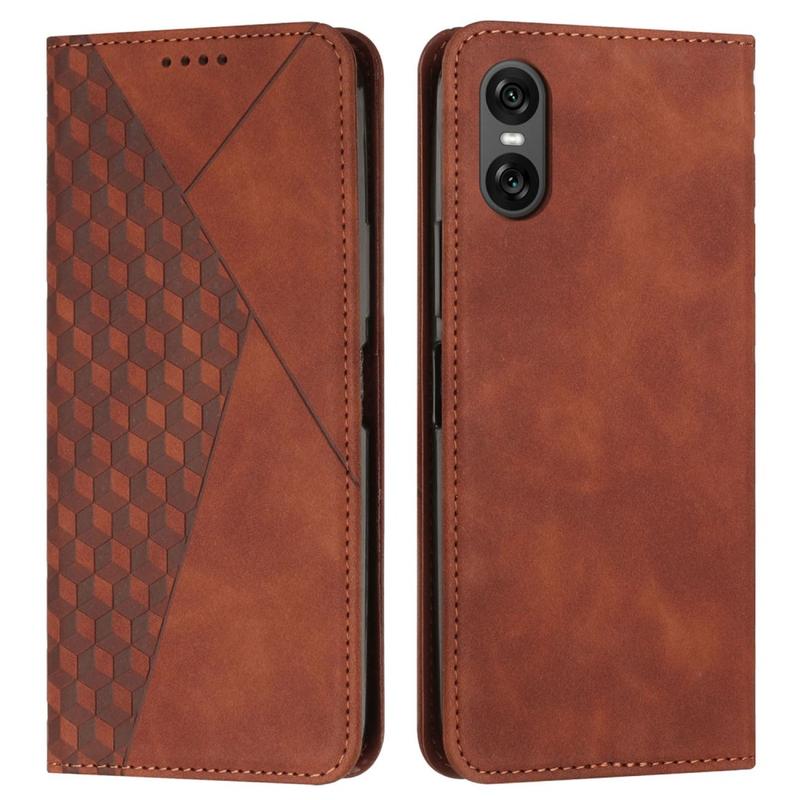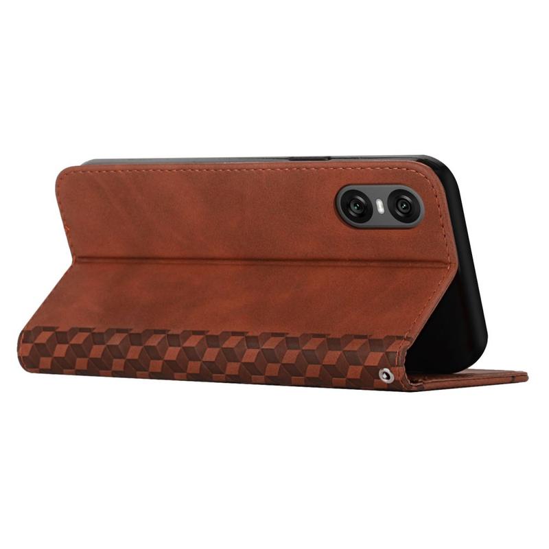 Sony Xperia 10 VI Brieftaschenhülle mit Rautenmuster mit Magnetverschluss - Braun