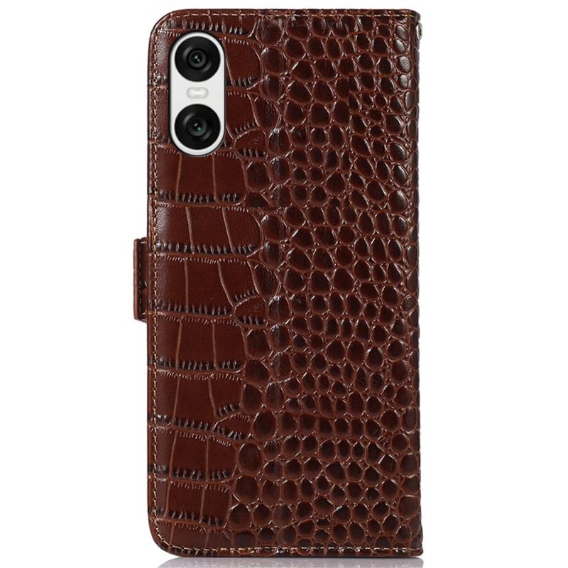 Crocodile Serie Lederhülle mit Geldbörse mit RFID für Sony Xperia 10 VI
