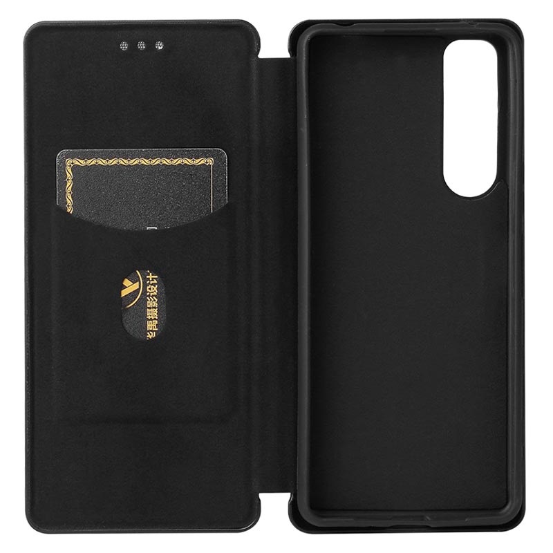 Bewahren Sie Ihr Sony Xperia 5 III in diesem Flip-Case mit Kohlefaser-Textur auf Nummer sicher auf.