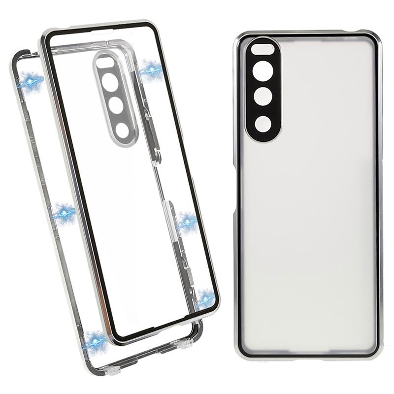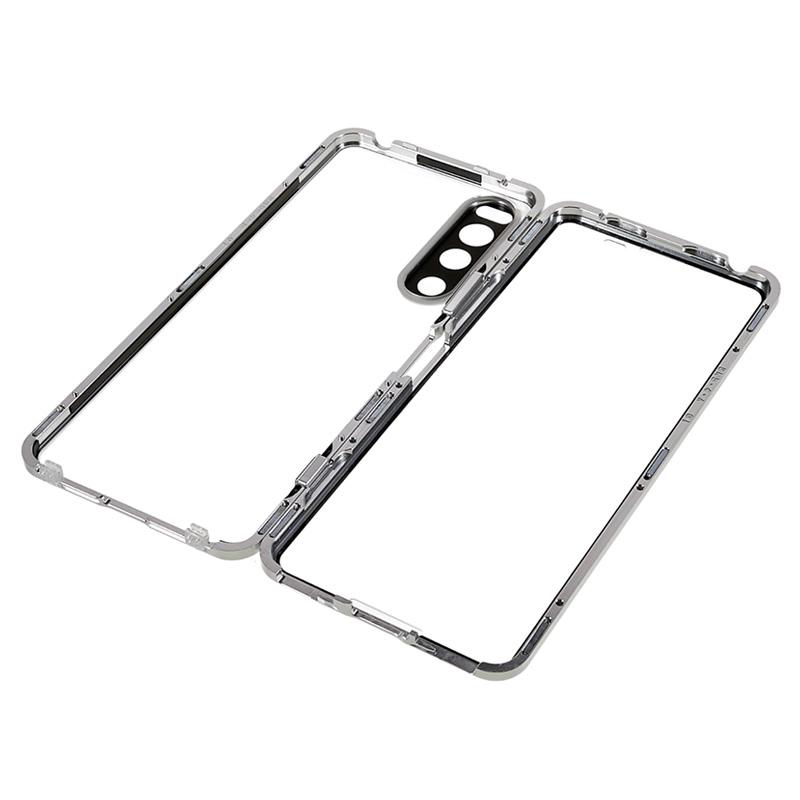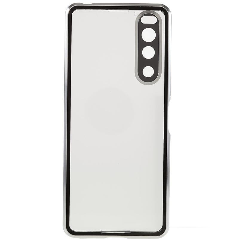 Sony Xperia 5 IV Magnetische Hülle mit Panzerglas Rückseite - Silber