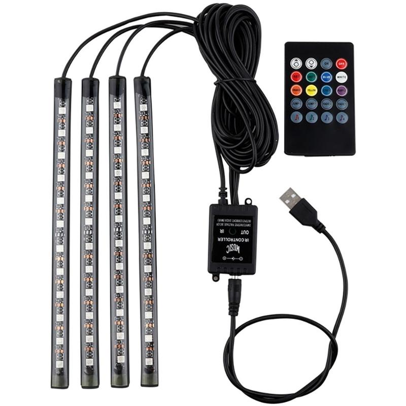 Sound-aktivierte Neon-Auto-Innenbeleuchtung mit drahtloser Fernbedienung und USB-Anschluss - 4 Stück, 36 LEDs