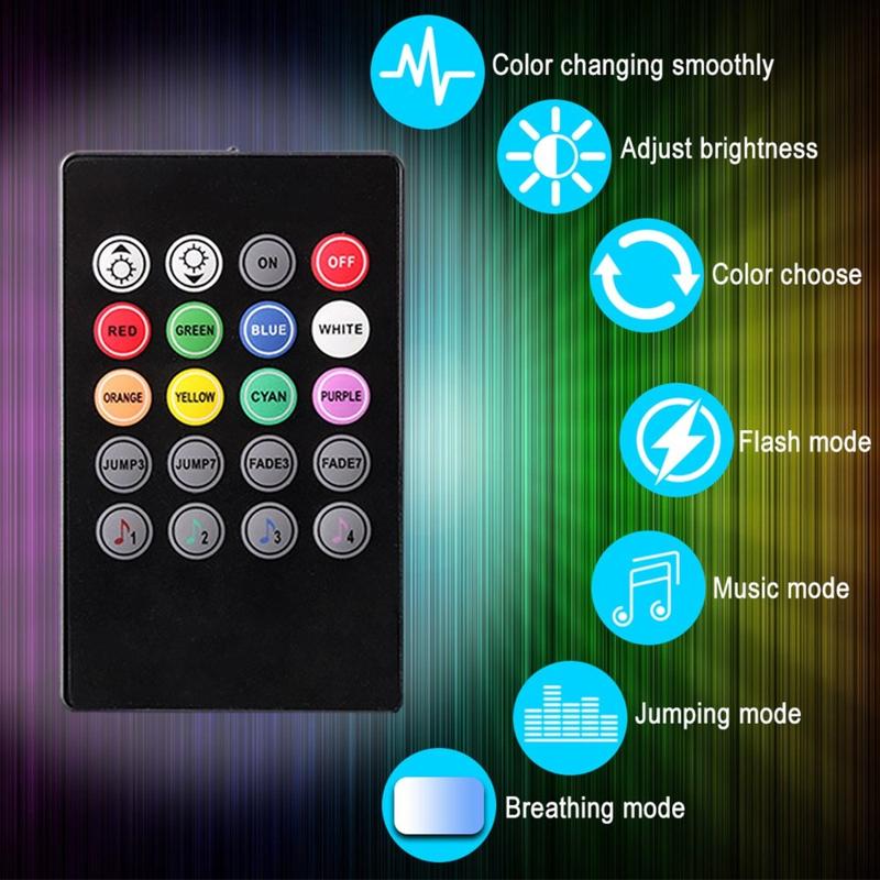 - Sound-aktivierter Modus: Das eingebaute Mikrofon synchronisiert die Lichtmuster mit Ihrer Musik und schafft so ein dynamisches Ambiente, das Ihren Lieblingssongs folgt.