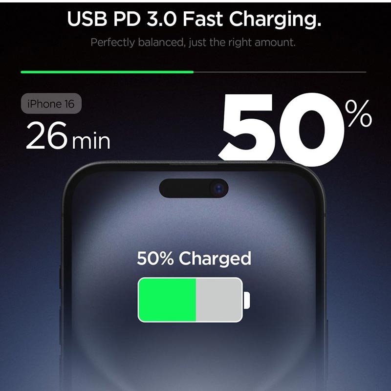 Das Spigen EE201EU Essential Charger bietet 20W Schnellladung für Ihre Smartphones und andere USB-C-Geräte. Dieses kompakte und tragbare Ladegerät ist auf Effizienz ausgelegt und bietet schnelle Aufladungen zu Hause oder unterwegs. Mit integrierten Sicherheitsfunktionen schützt es Ihre Geräte vor Überladung, Überhitzung und Kurzschlüssen und ist damit eine zuverlässige und effiziente Ladelösung.