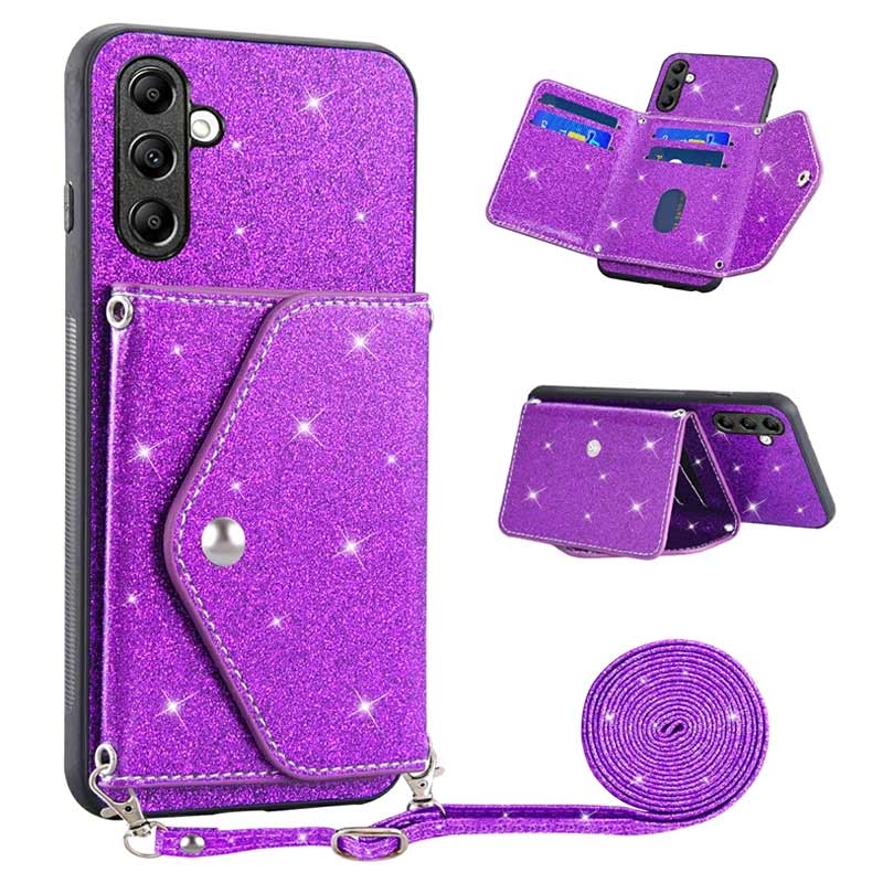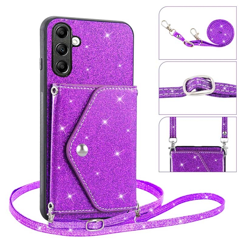 Die hochwertige Hülle aus der Stardust-Serie ist die richtige Wahl, um Ihr Samsung Galaxy A14 vor möglichen Schäden zu schützen. Es hat einen Kartenhalter auf der Rückseite mit einem Druckknopf, der großartig ist, um Ihre wichtigen Karten aufzubewahren und sicher aufzubewahren. Eine glänzende Glitzeroberfläche verleiht Ihrem Telefon einen Hauch von Glamour. Darüber hinaus wird die Hülle mit einem 150cm langen Schultergurt geliefert, mit dem Sie Ihr Samsung Galaxy A14 überall hin mitnehmen können.
