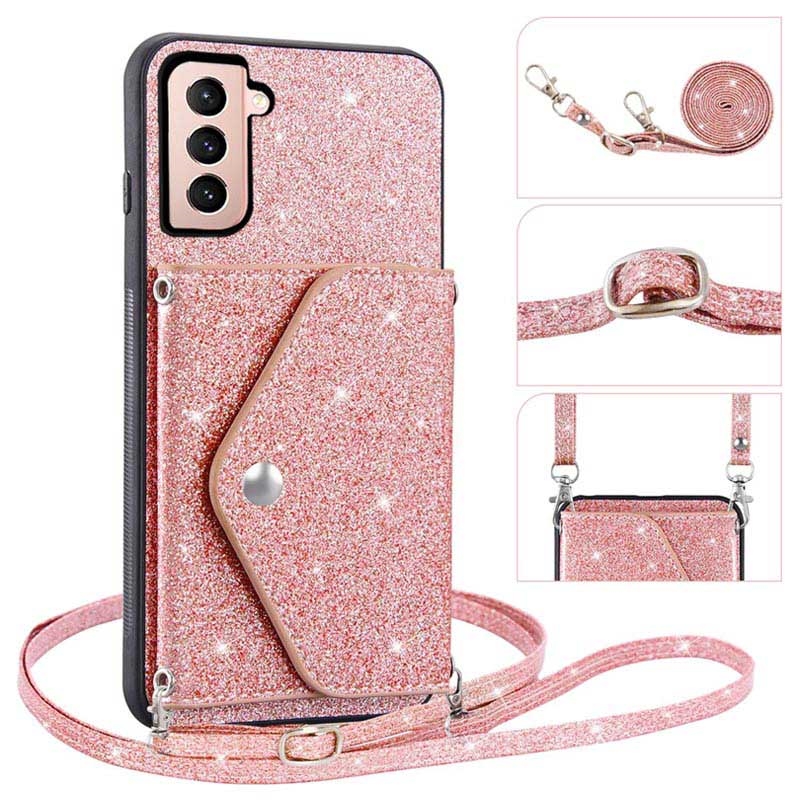 Die Hülle der Stardust-Serie ist stilvoll, vielseitig und ausreichend schützend, um Ihr Samsung Galaxy S23 5G in makellosem Zustand zu halten. Der Kartenhalter auf der Rückseite verfügt über genügend Fächer, um Ihren Ausweis oder Ihre Kreditkarte griffbereit zu halten. Außerdem wird es mit einem verstellbaren Riemen geliefert, mit dem Sie die Tasche crossbody oder als Umhängetasche tragen können. Diese Hülle für das Samsung Galaxy S23 5G ist aus flexiblem, stoßdämpfendem TPU gefertigt und mit glitzerndem Polyurethan beschichtet.