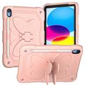Stoßfeste Hülle für iPad 10.9 (2022) Schmetterlingsform Kickstand Tablet Hülle Silikon + PC Schutzhülle mit Schulterriemen - Pink