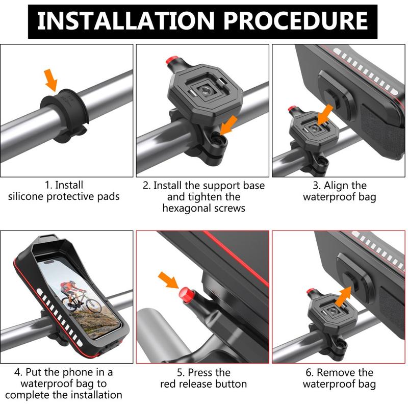 • Stoßfeste, wasserdichte Motorrad-Handyhalterung - Lenkerhalterung für Fahrräder, E-Bikes und Roller, für Handys bis zu 7 Zoll