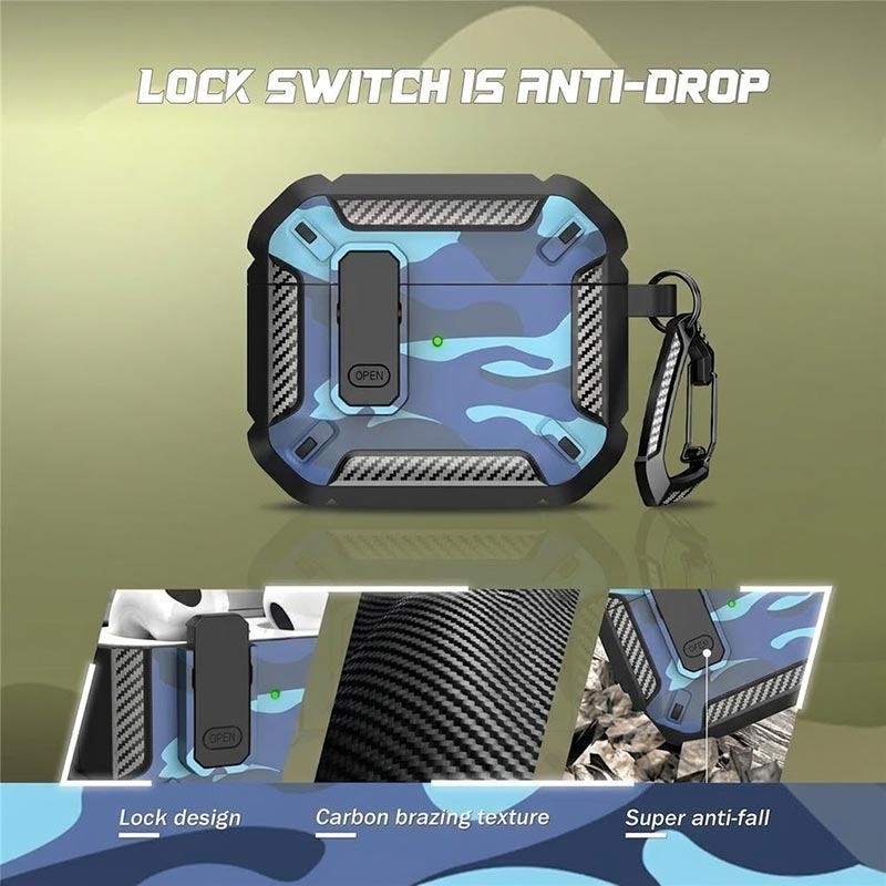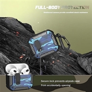 Stoßfestes Camouflage-Etui für AirPods 4 mit Karabinerhaken - Tarnblau