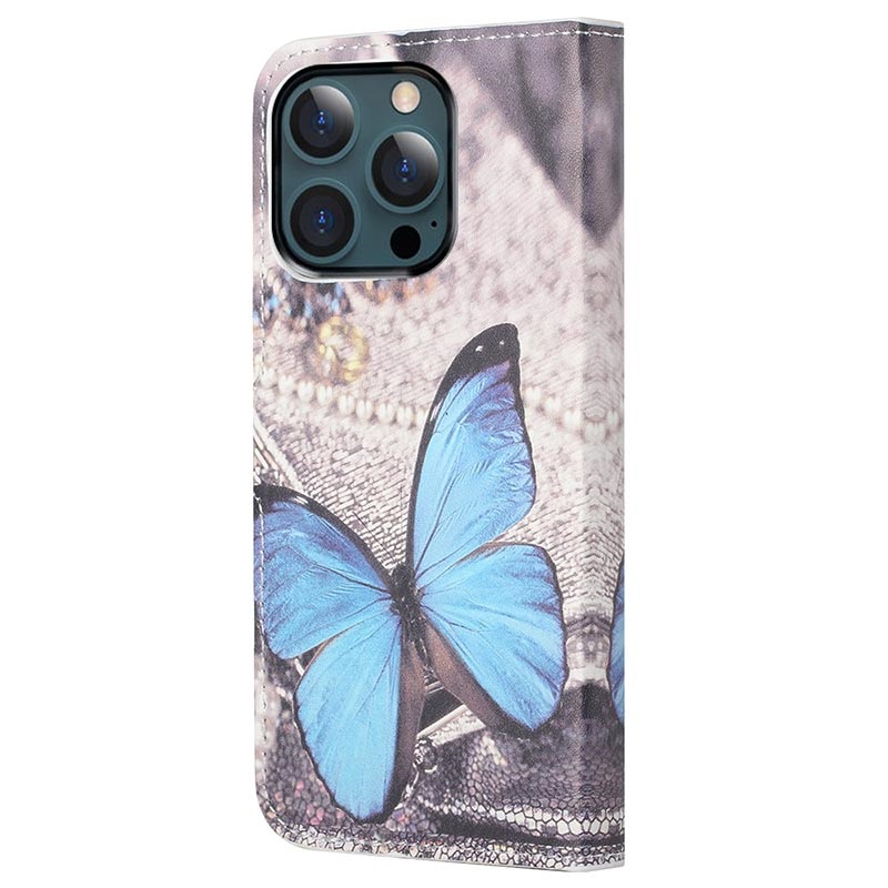 Style Series iPhone 13 Pro Max Schutzhülle mit Geldbörse - Blau Schmetterling