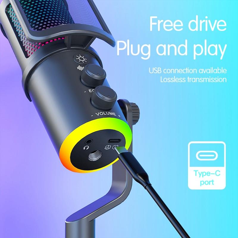 Das SU9 RGB Gaming-Mikrofon wird direkt über USB oder Typ-C angeschlossen und ist sofort einsatzbereit. Keine Treiber oder komplizierte Installation erforderlich - einfach einstecken und mit der Aufnahme beginnen. Es ist mit Computern, Laptops und Smartphones kompatibel und eignet sich perfekt für Spiele, Streaming und Online-Meetings.