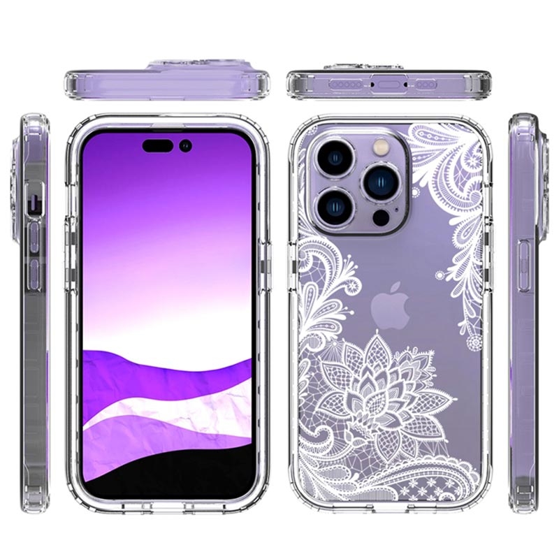 Schützen Sie Ihr iPhone 14 Pro und lassen Sie es mit dieser hochwertigen Hybridhülle von Sweet Armor noch schöner aussehen. Das Gehäuse besteht aus zwei Teilen – es hat eine rückseitige Abdeckung aus TPU, während der Rahmen aus robustem Polycarbonat besteht, das den Schutz verbessert und auf eine andere Ebene bringt. Das transparente Design lässt die ursprüngliche Schönheit Ihres iPhone 14 Pro durchscheinen, während das schöne Muster es trendig aussehen lässt.