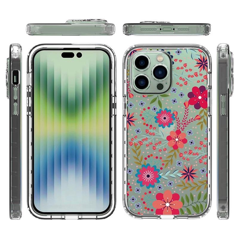 Betonen Sie die Schönheit Ihres iPhone 14 Pro Max mit dieser wunderschönen Hybridhülle aus der Sweet Armor Serie. Diese schöne Hülle bietet vollständigen Schutz für Ihr iPhone 14 Pro Max dank eines zweiteiligen Designs, das eine hintere Abdeckung aus flexiblem TPU-Material mit verstärkten Ecken und einen soliden Kunststoff-Frontrahmen mit einer erhöhten Kante um den Bildschirm umfasst. Darüber hinaus wird das bewundernswerte Design, das auf die transparente Hülle gedruckt ist, Ihr iPhone 14 Pro Max hervorheben.