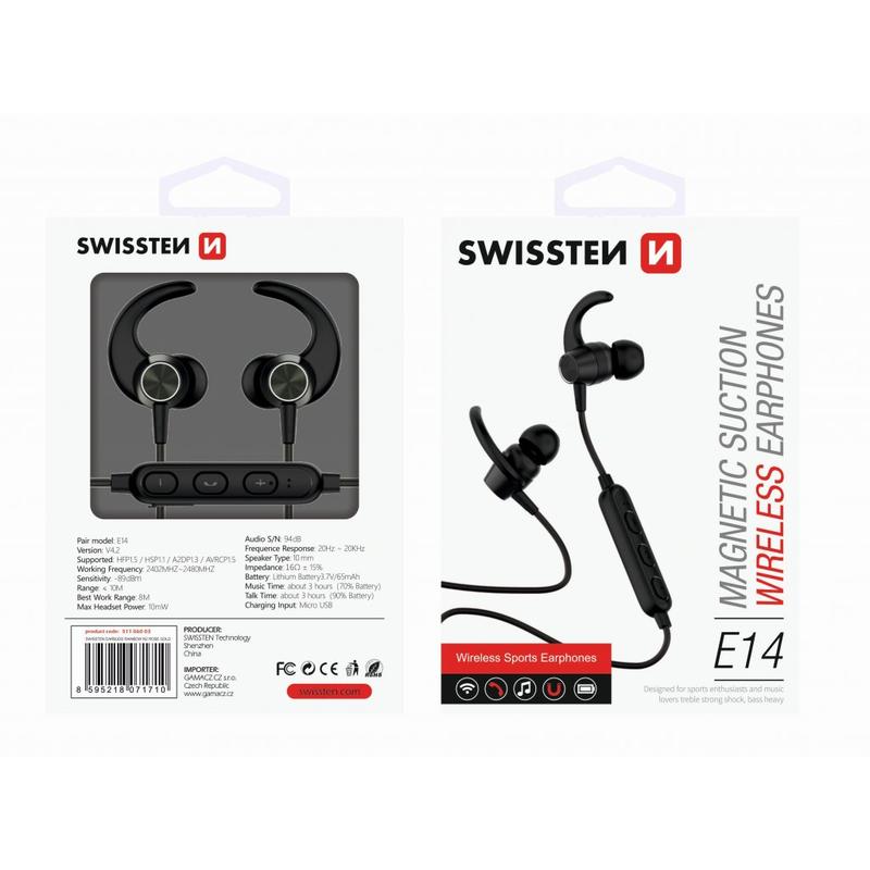 SWISSTEN Active Bluetooth Wireless Headphones bieten die ideale Mischung aus Komfort, Funktionalität und langer Akkulaufzeit. Dank einfacher Bluetooth-Kopplung, zuverlässiger Passform und klarem Klang sind sie ein Muss für alle, die aktiv bleiben und gleichzeitig ihre Musik genießen möchten. Dank des integrierten Mikrofons bleiben Sie immer in Verbindung, sodass Sie keinen wichtigen Anruf verpassen - auch nicht mitten im Training.
