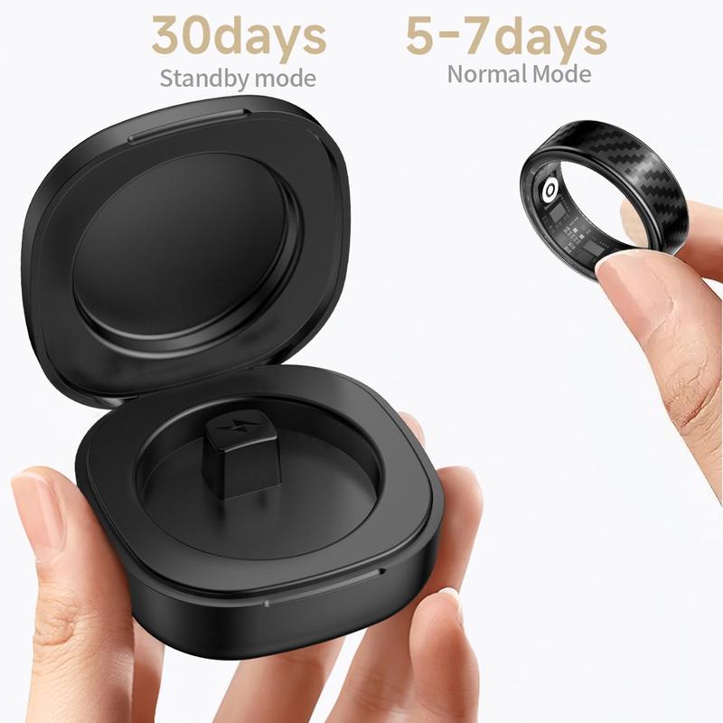 SY02 Carbon Fiber-Pattern Smart Ring - Schlaf, Blutsauerstoff & Herzfrequenz-Tracker mit Wireless Charging Case