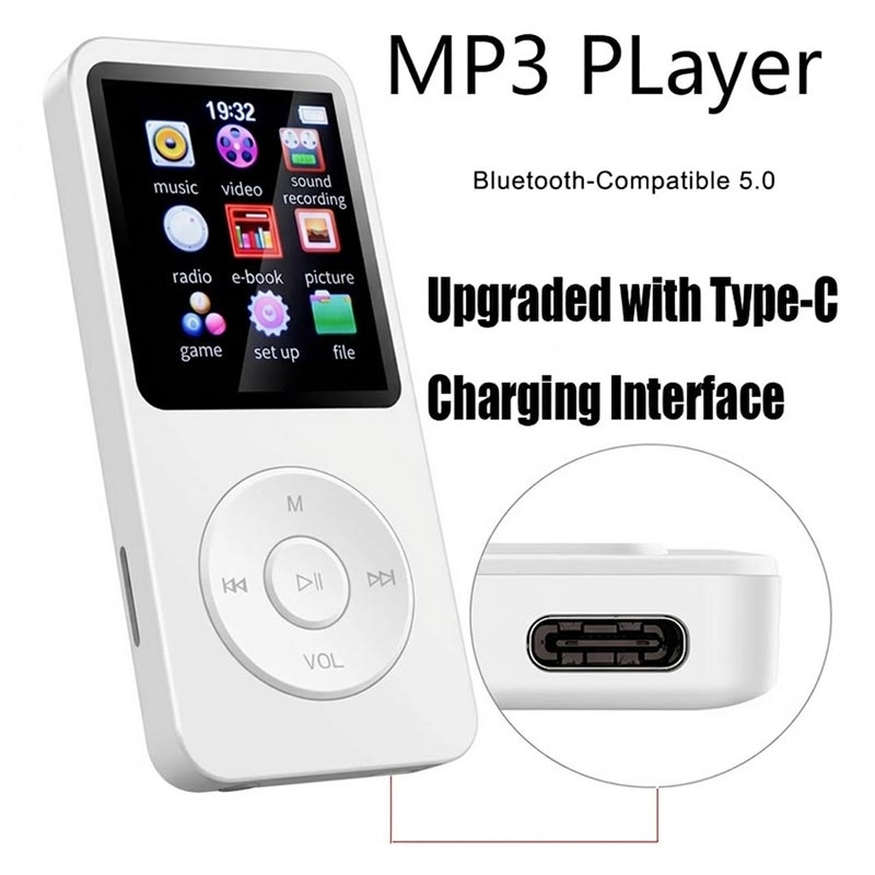 Der 1.8-Zoll-Bildschirm erleichtert das Durchsuchen von Titeln und Einstellungen, und dank Bluetooth 5.0 können Sie kompatible kabellose Kopfhörer oder Lautsprecher anschließen, um kabellos Musik zu hören. Auch der Speicher ist flexibel: Eine 64-GB-TF-Karte ist im Lieferumfang enthalten, und der Player unterstützt TF-Erweiterungen bis zu 128 GB, sodass Sie reichlich Platz für Songs, Hörbücher und Dateien haben. Laden Sie das Gerät über einen 5V/1A-Eingang auf und genießen Sie nach einer Ladezeit von ca. 2 Stunden schnell wieder Ihre Musik.