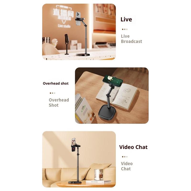 Erstellen Sie Videos, Streams oder Anrufe in professioneller Qualität mit dem verstellbaren Tischtelefonständer T10, der auf Stabilität, Flexibilität und Komfort ausgelegt ist. Seine solide Metallkonstruktion und die verstellbare Höhe machen ihn zum perfekten Begleiter auf dem Tisch für Live-Streaming, Videoerstellung oder freihändiges Betrachten.
