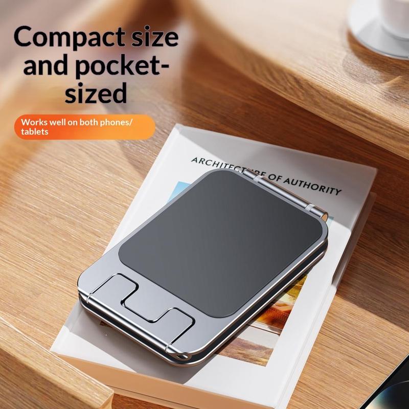 Wenn der Ständer nicht gebraucht wird, lässt er sich zu einer schlanken, kompakten Form zusammenklappen, die sich leicht in einer Tasche, Schublade oder einem Rucksack verstauen lässt. Das macht ihn ideal für den Weg zur Arbeit, Geschäftsreisen, Urlaubsreisen oder einfach dafür, Ihren Schreibtisch aufgeräumter zu halten. Dank seiner leichten Bauweise lässt er sich zudem bequem zwischen Räumen oder Arbeitsbereichen transportieren, ohne viel Platz einzunehmen.