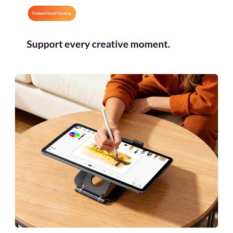 Der klappbare Handy- und Tablet-Ständer T2 MAX ist eine praktische Tischhalterung, die das Arbeiten, Lernen, Streamen und Surfen komfortabler macht. Er eignet sich sowohl für Handys als auch für Tablets und bietet eine stabile und verstellbare Plattform für den täglichen Gebrauch zu Hause, im Büro oder auf Reisen. Dank seines klappbaren Designs und der Konstruktion aus Aluminiumlegierung ist er eine clevere Wahl für Nutzer, die einen zuverlässigen Ständer suchen, der sich leicht transportieren und verstauen lässt.