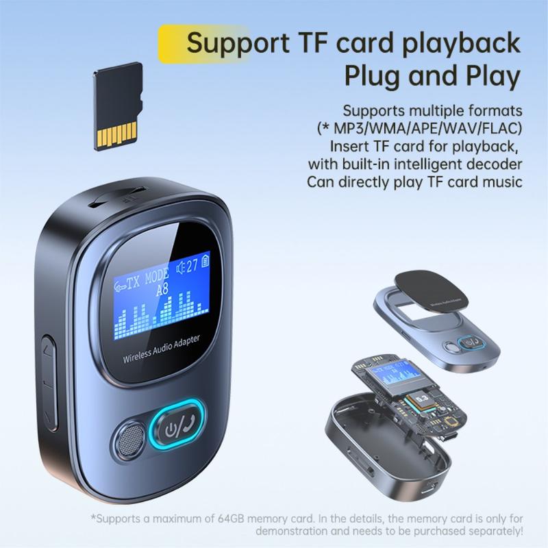 • T68 LED-Digitalanzeige Bluetooth 5.3 Sender / Empfänger 2-in-1 Audio Adapter Multifunktionaler Drahtlosadapter (CE)