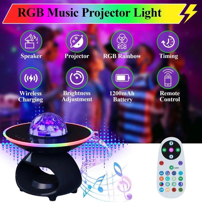 TCSP-001-C 4-in-1-Sternenprojektor-Lampe - 15 W kabelloses Ladegerät, Bluetooth 5.0-Lautsprecher und RGB-Stimmungslicht