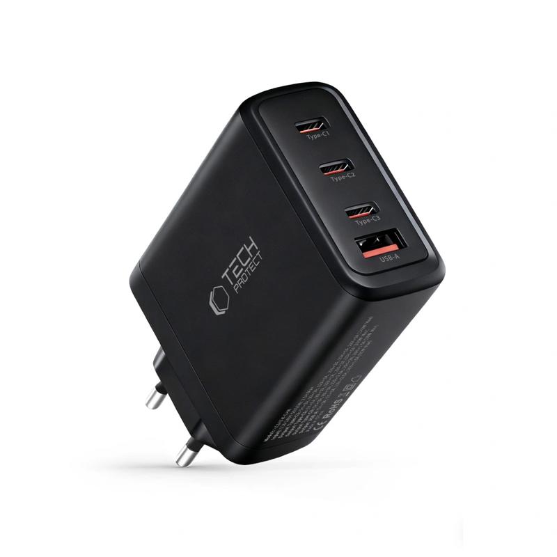 Tech-Protect NC140W 4-Port-GaN-Ladegerät - 3x USB-C, 1x USB-A, 140W Power Delivery Schnellladegerät