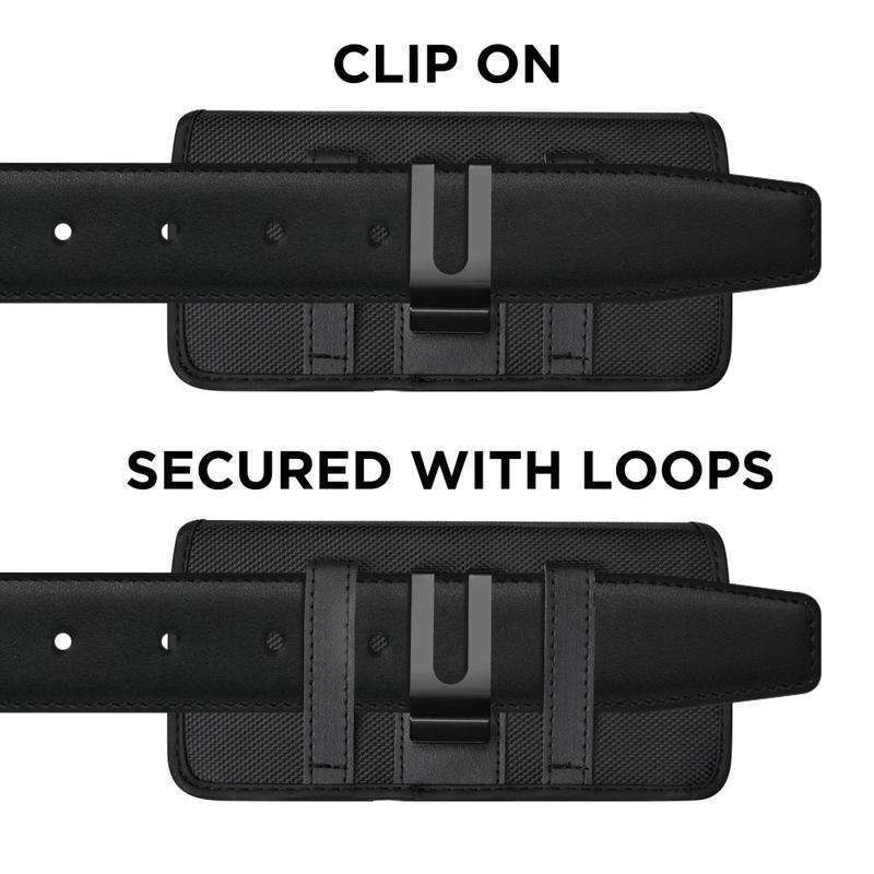 - Bequeme Trageoptionen - Ausgestattet mit einem Metallgürtelclip und zwei Gürtelschlaufen für horizontales Tragen, die Stabilität und einfachen Zugriff gewährleisten.