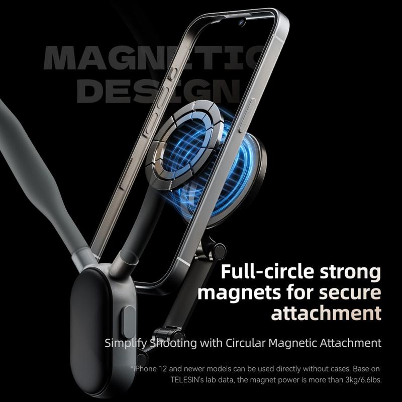 TELESIN MNM-001 Für iPhone 12 / 13 / 14 / 15/ 16 Silikon Hals Halterung Magnetische Selfie Stick Telefon Hals Halterung