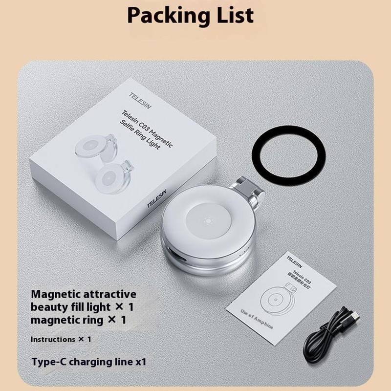 TELESIN S5-BGD-01 Magnetisches Beauty-Fill-Light & Selfie-Spiegel - 360° drehbare Taschen-LED für iPhone12-16 & MagSafe Cases
