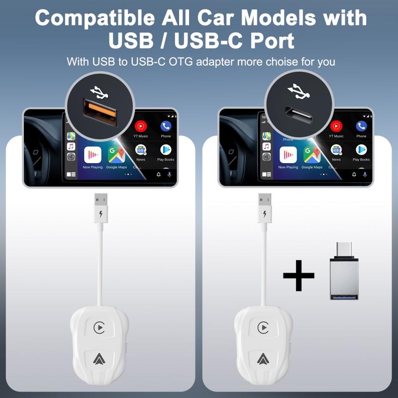 THT-020-9 Car Wireless Carplay Android Auto Dongle Kabelgebundener zu drahtloser Adapter - Weiß