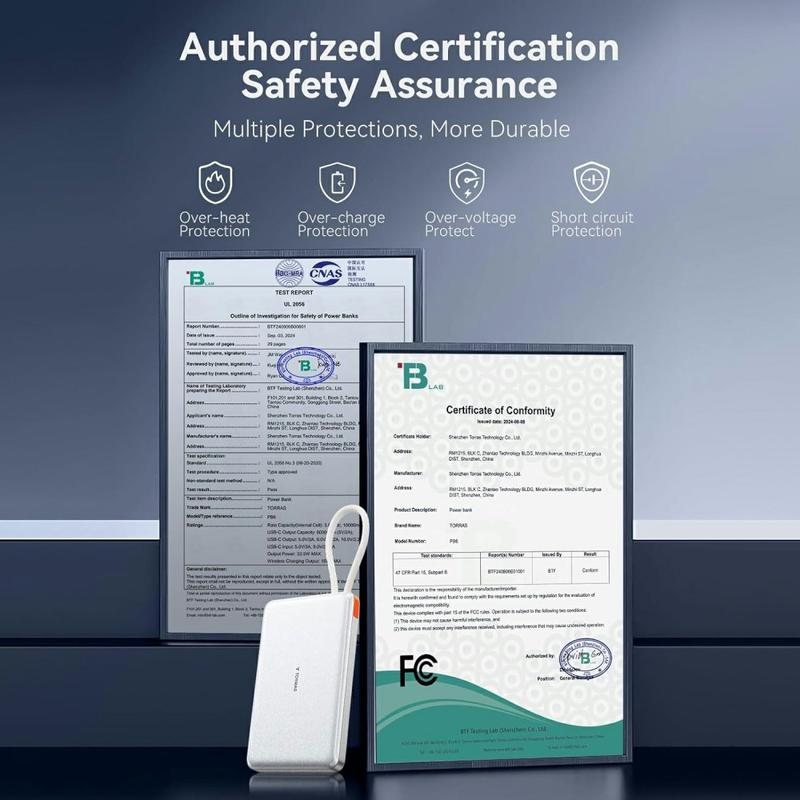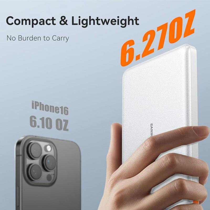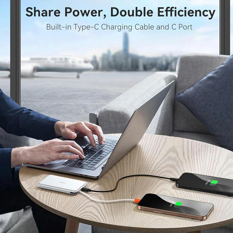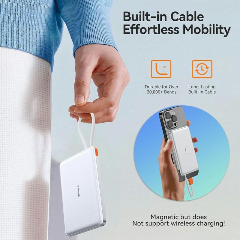 Torras Mini Slim PD Power Bank mit integriertem USB-C Kabel - 22.5W Schnellladung, 10000mAh