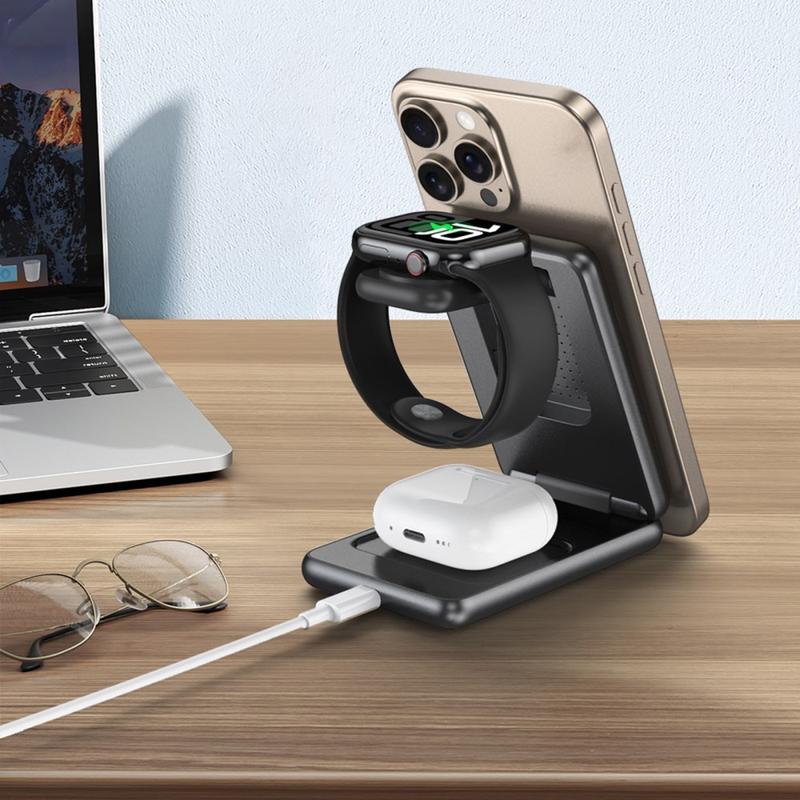 - 3-in-1-Ladestation - Laden Sie gleichzeitig Ihr Telefon, Ihre Ohrhörer und Ihre Uhr mit einem kompakten Gerät auf.