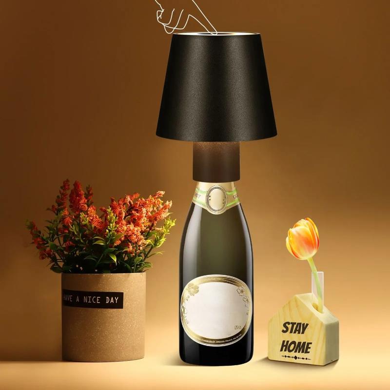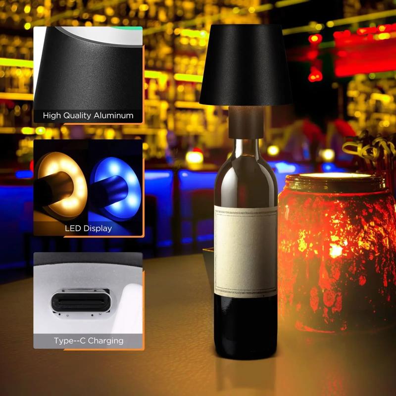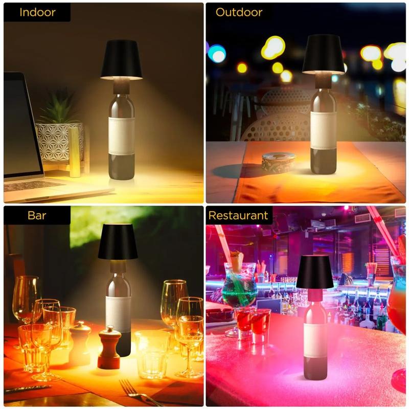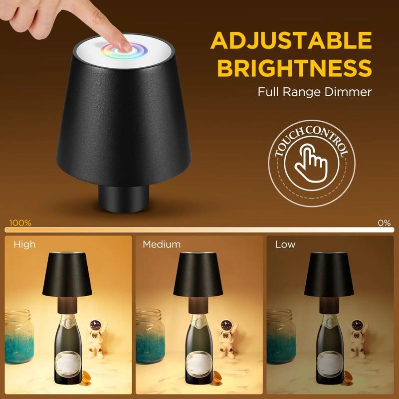 Touch Control Wine Bottle Light 3 Changing Color LED Lamp Portable Desk Light für Bar, Party - Schwarz