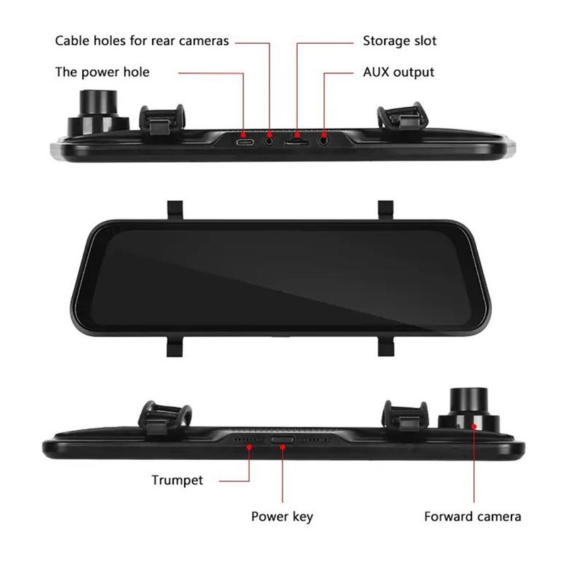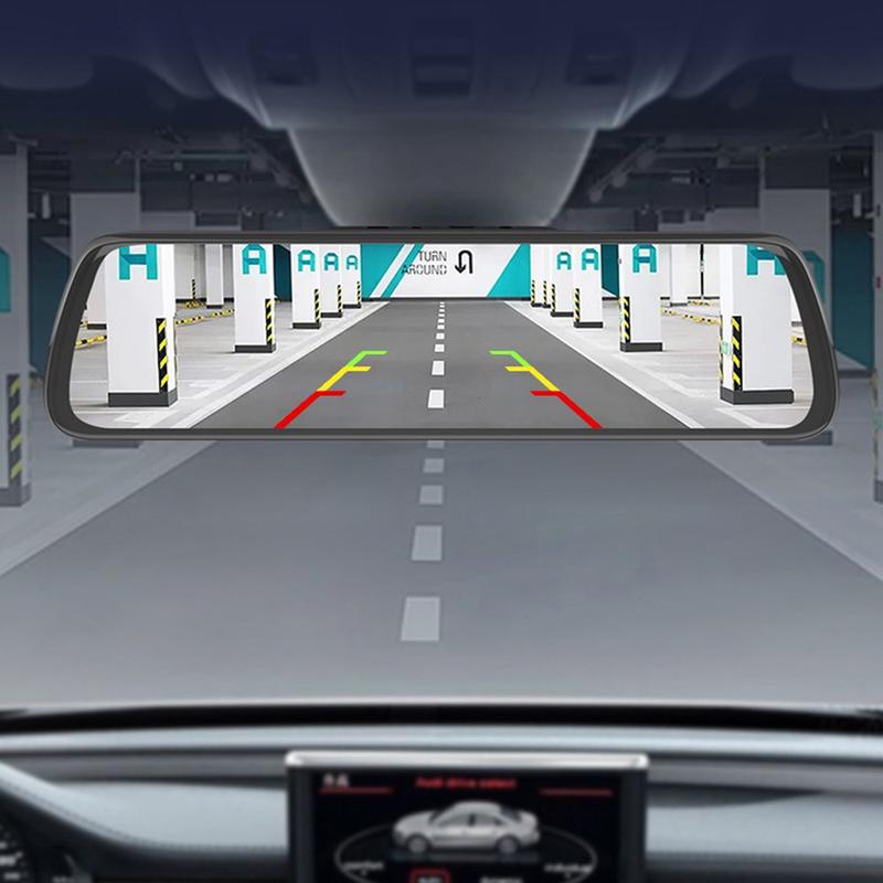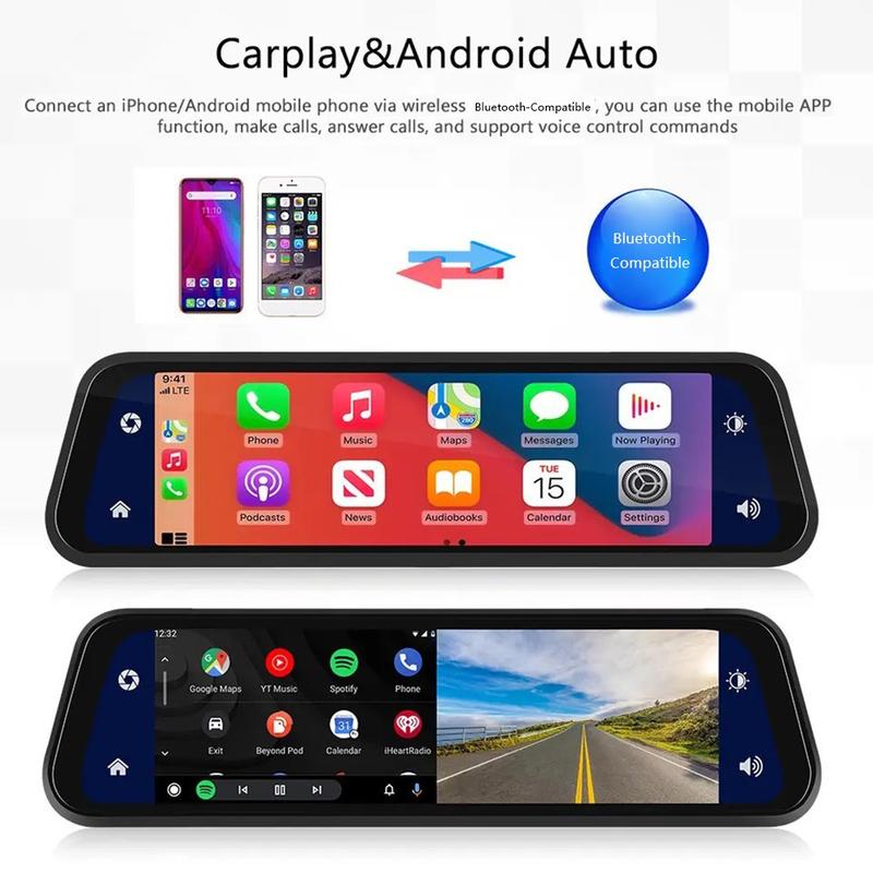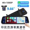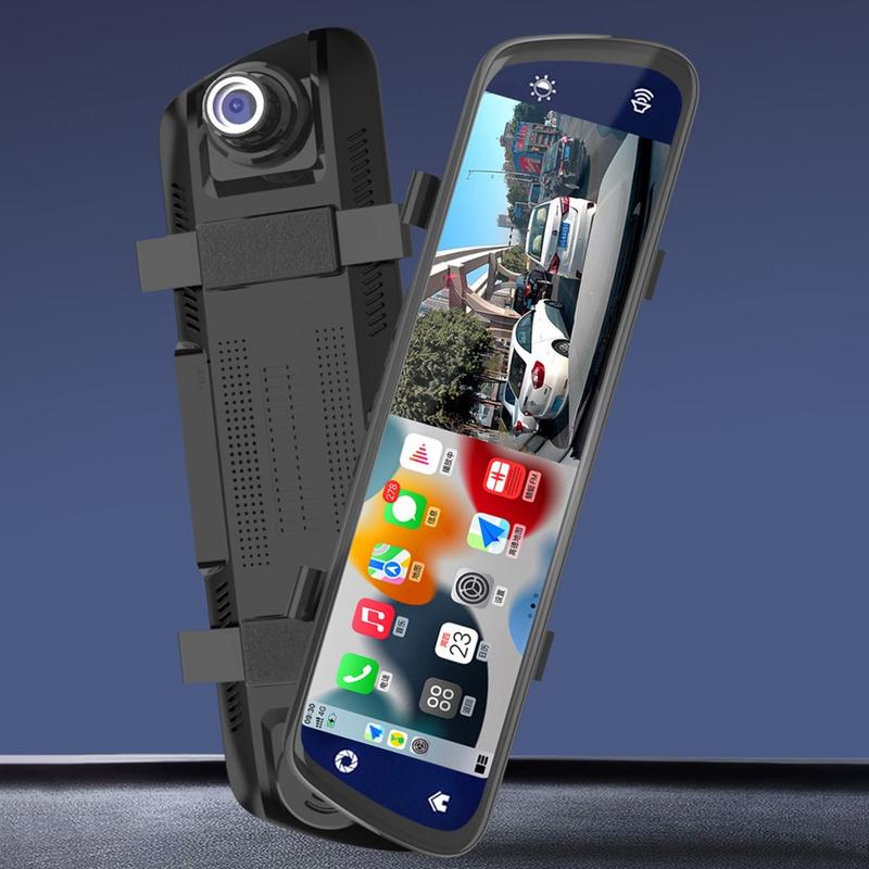 • 904 9.66" Touchscreen Dash Cam mit CarPlay - Vollbild-Streaming Rückspiegel 4K und 1080P Dual Lens DVR