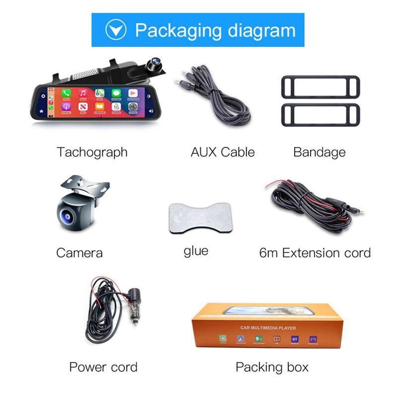 Touchscreen-Dual-Lens Dash Cam mit CarPlay - 9.66" - Schwarz