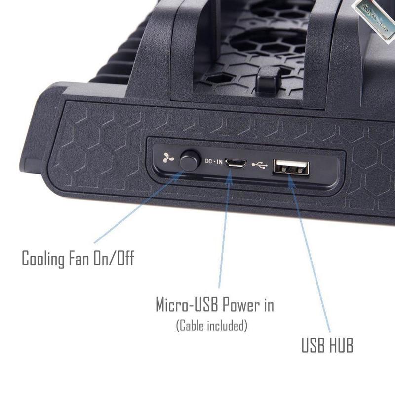 Lüfter: Dieser vertikale Ständer verfügt über eingebaute Lüfter, die die Wärme von Ihrer PlayStation 4 / Slim-Konsole ableiten und die Funktionalität aufrechterhalten