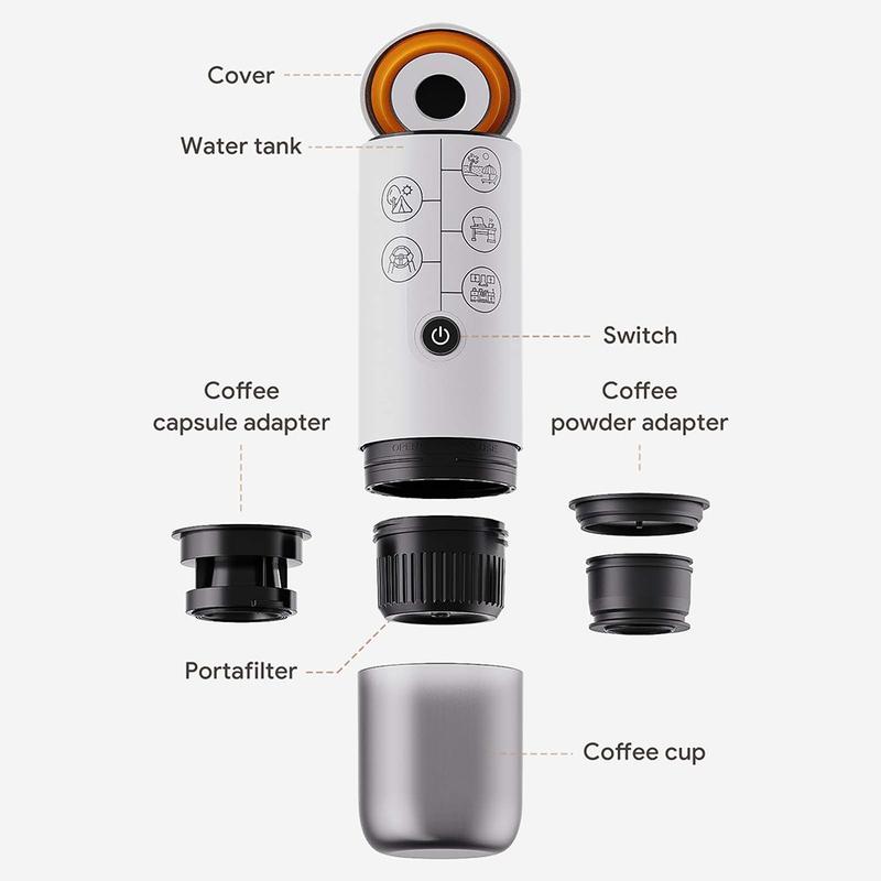 • Tragbare, kabellose 2-in-1-Espressomaschine - perfekt für Reisen, Auto und Außeneinsatz