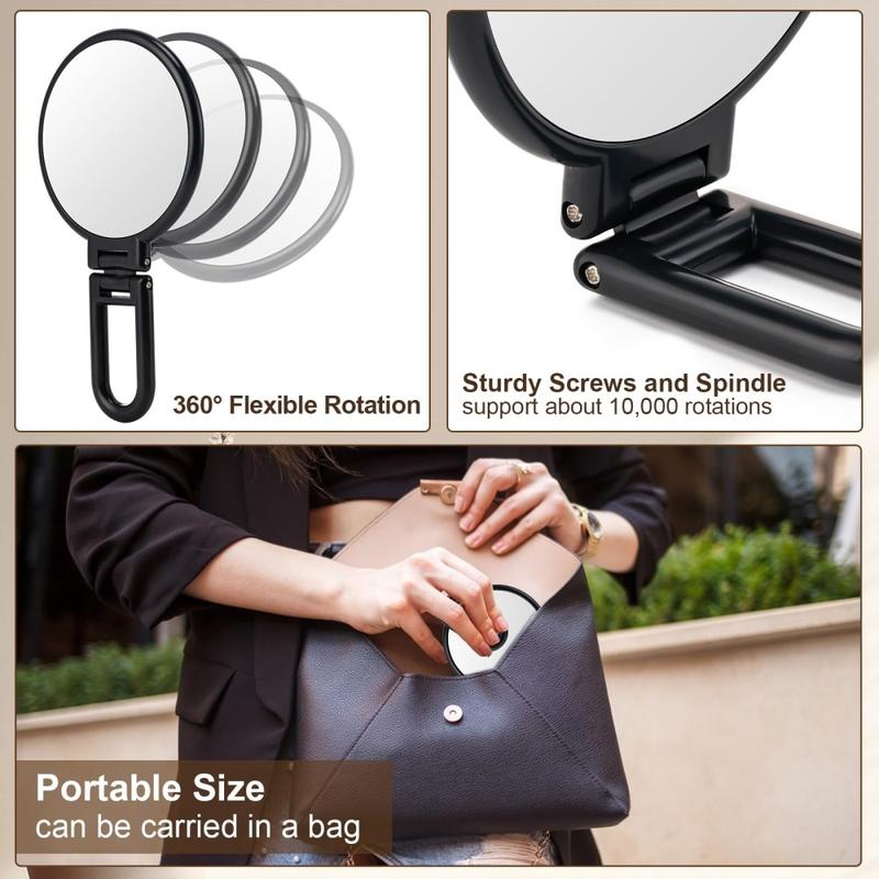 Sehen Sie jedes Detail, wenn es darauf ankommt. Dieser kompakte, klappbare Spiegel verfügt über eine Standardansichtsseite und eine 10fache Vergrößerungsseite für Präzisionsaufgaben. Der um 360 Grad drehbare Griff lässt sich einrasten, sodass Sie ihn in der Hand halten, an einen Haken hängen oder auf einen Tisch stellen können. Er ist leicht und reisefreundlich und passt in jede Tasche - für die Hautpflege, das Auffrischen des Make-ups oder die schnelle Kontrolle des Mundes unterwegs.