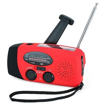 Tragbarer Solarradio mit Handkurbel und LED-Licht - Rot