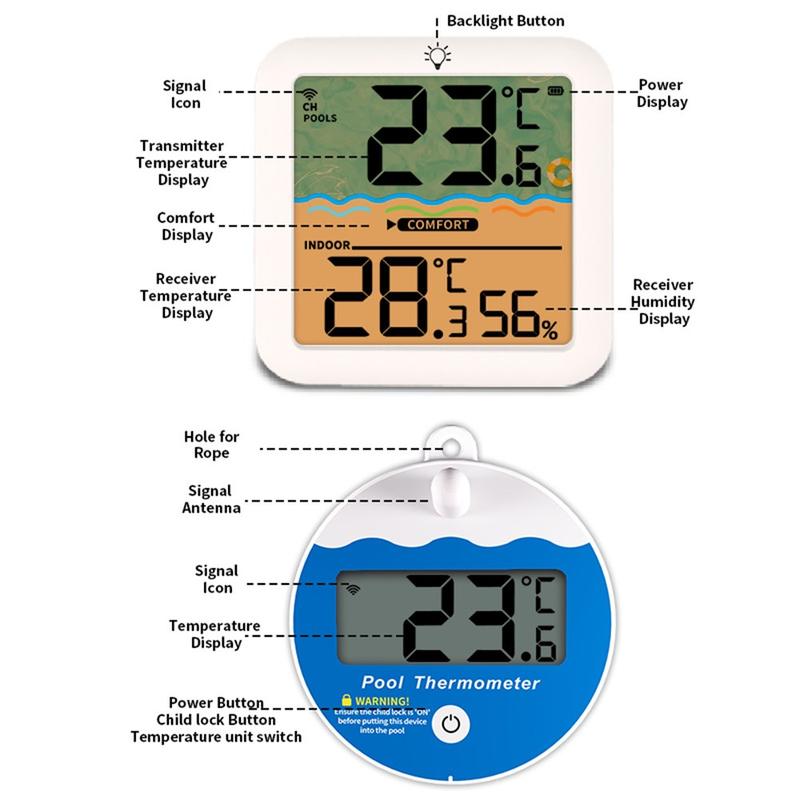 - Drahtloses Pool-Thermometer mit Innenempfänger