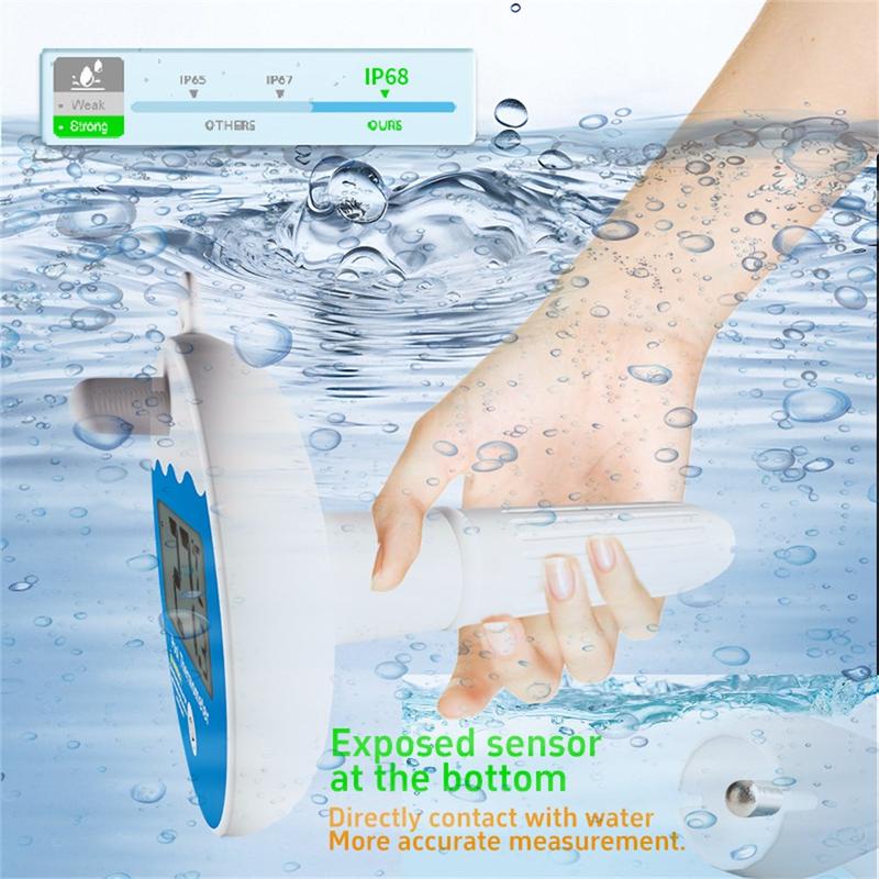 TS-PL07 Drahtloses Poolthermometer - schwimmfähiges digitales Wassertemperaturmessgerät (IP68) mit Innenempfänger und Feuchtigkeitsanzeige