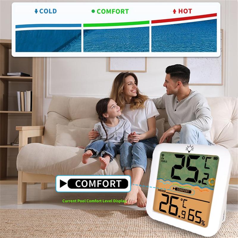 Es ist zudem eine praktische Wahl für Familien und regelmäßige Schwimmer, die eine genauere Temperaturüberwachung ohne Rätselraten wünschen. Die zusätzliche Anzeige von Raumtemperatur und Luftfeuchtigkeit, die Speicherfunktion und die flexible Platzierung des Empfängers machen es nützlicher als ein einfaches Wasserthermometer.